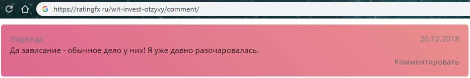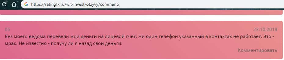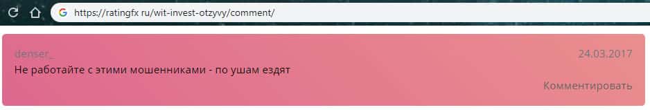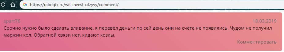 - Еще один отзыв о лохотроне Вит Инвест с портала ratingfx ru