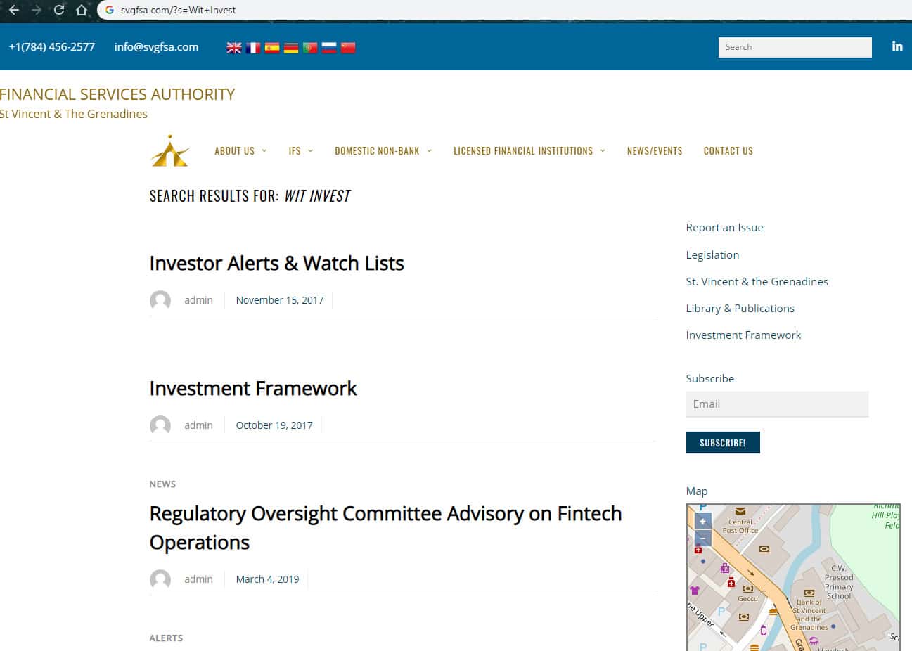 Дополнительным преимуществом для аферистов Вит Инвест является факт их оффшорной регистрации, а именно: Suite 305, Griffith Business Centre, P.O. Box 1510, Kingstown Saint Vincent and the Grenadines, что дает жулью Wit Invest дополнительную анонимность счетов. Все судебные тяжбы с лохотроном Вит Инвест будут происходить на территории оффшора.