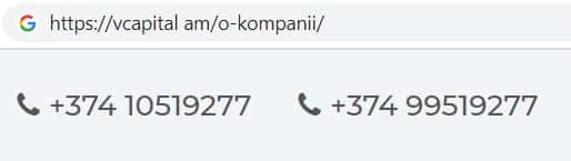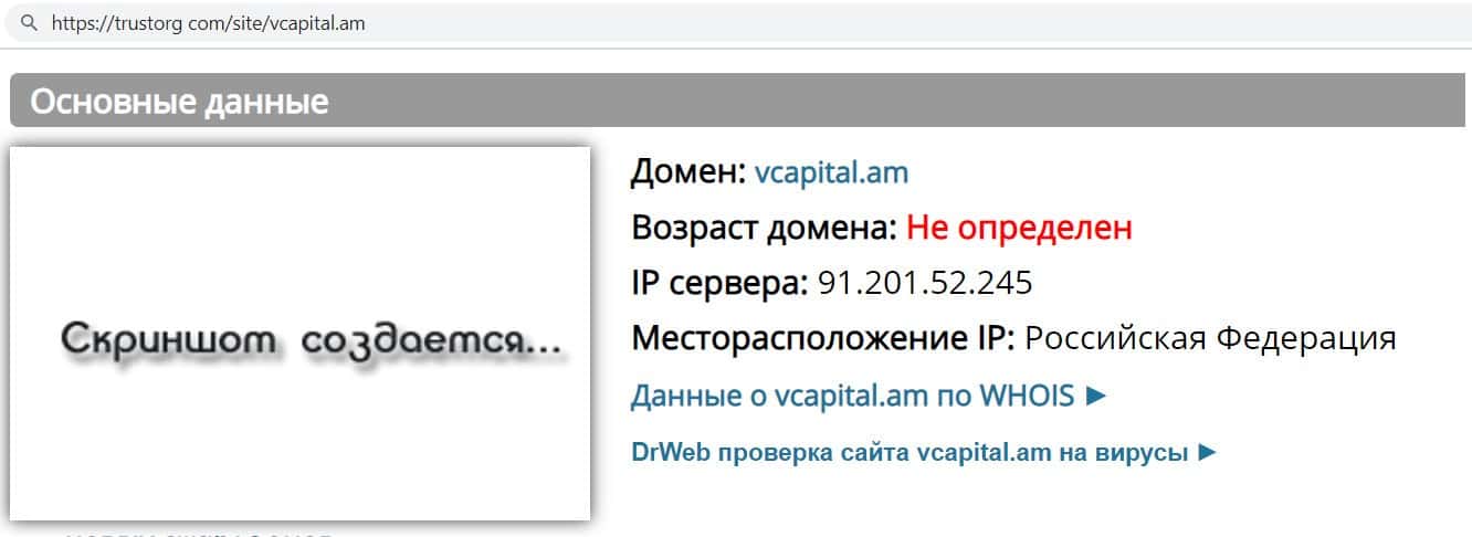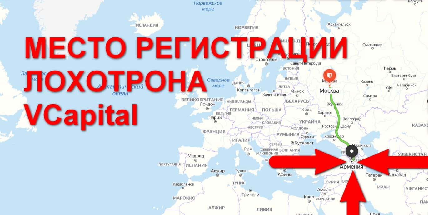 Так же финансовый лохотрон VCapital указал, что зарегистрирован в Армении, но не стоит доверять данной информации, так как мошенники часто используют фальшивые адреса.