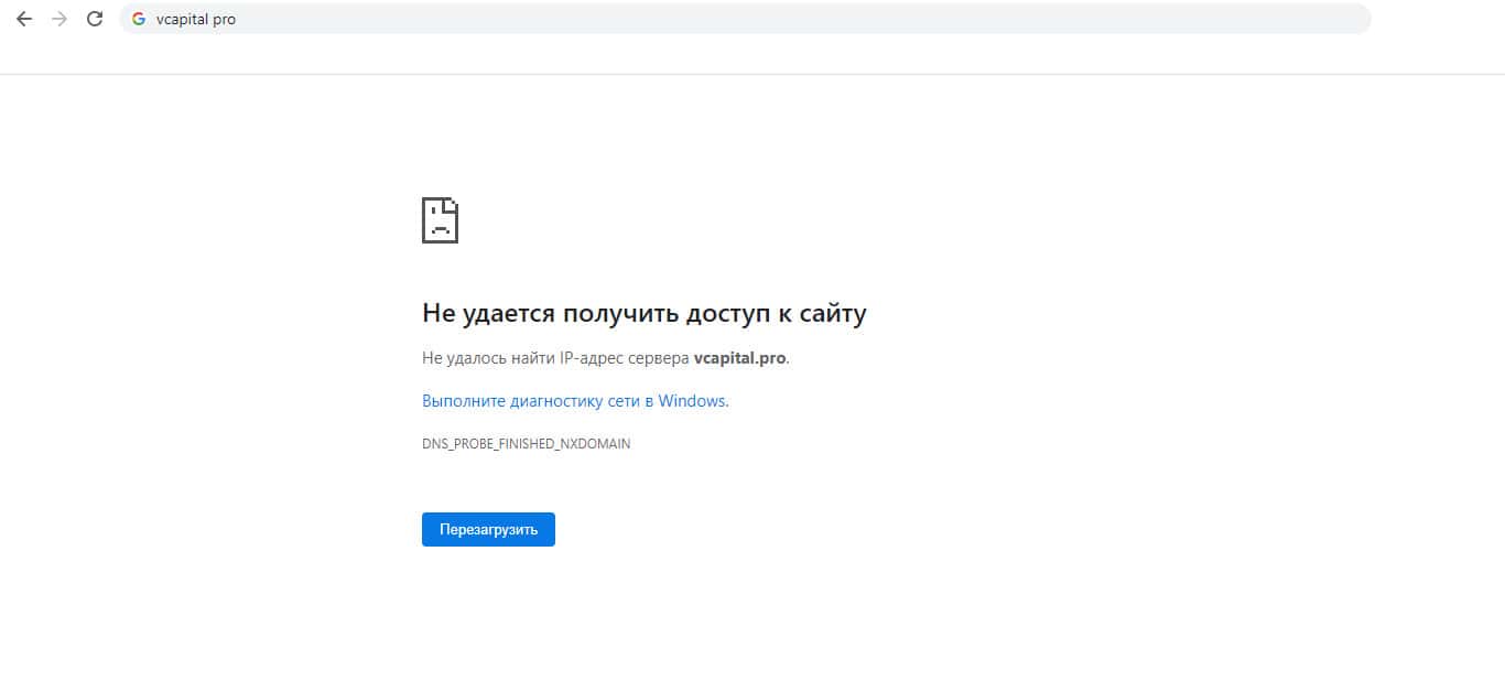 Совсем недавно компания мошенников VCapital существовала на одном домене, но теперь мошенники сменили домен, так как постоянно меняют сайты своей конторы. Это однин из явных признаков мошенничества, так как официальные компании всегда остаются на одном домене, а не прыгают с одного на другой каждый день.