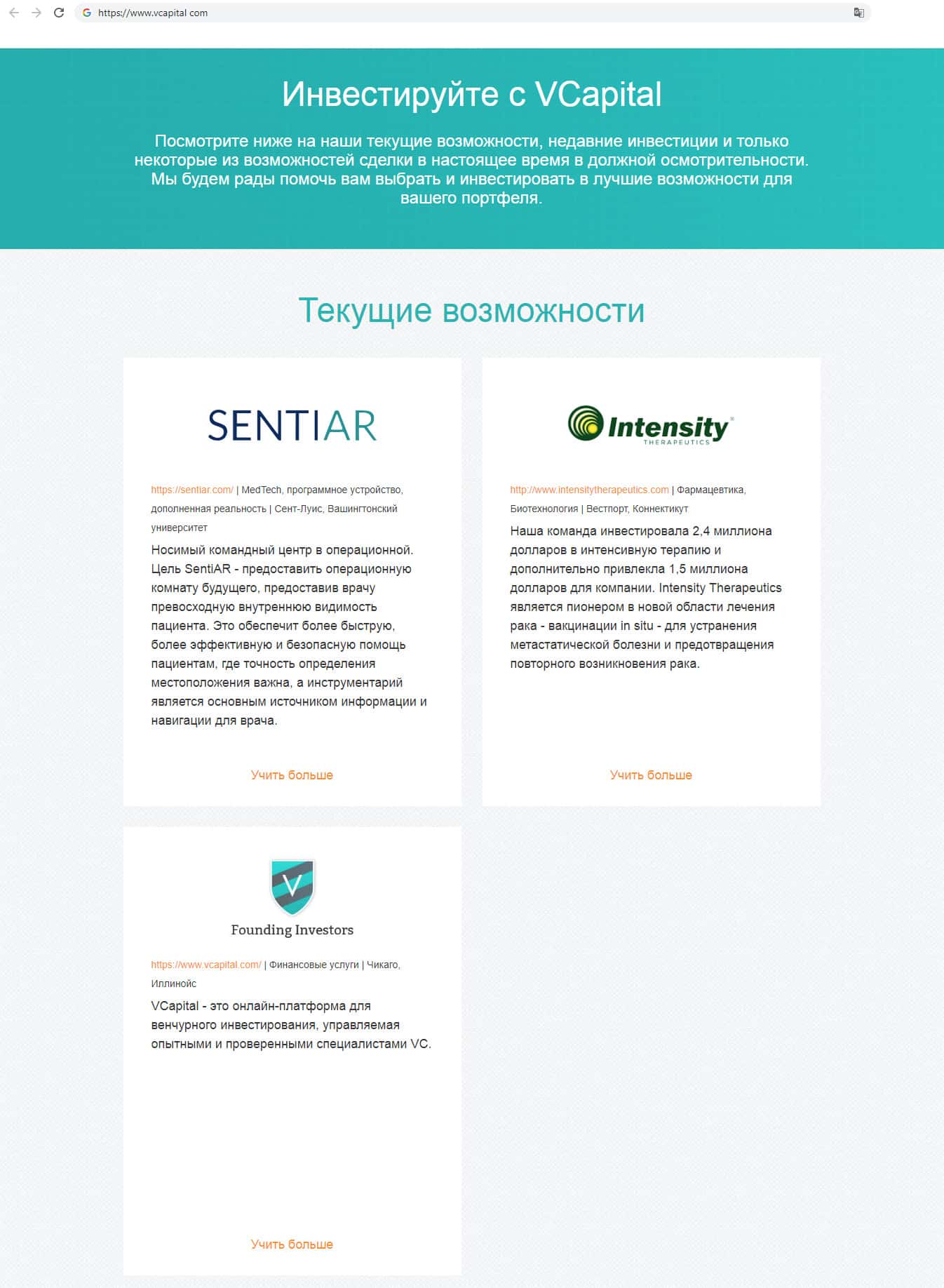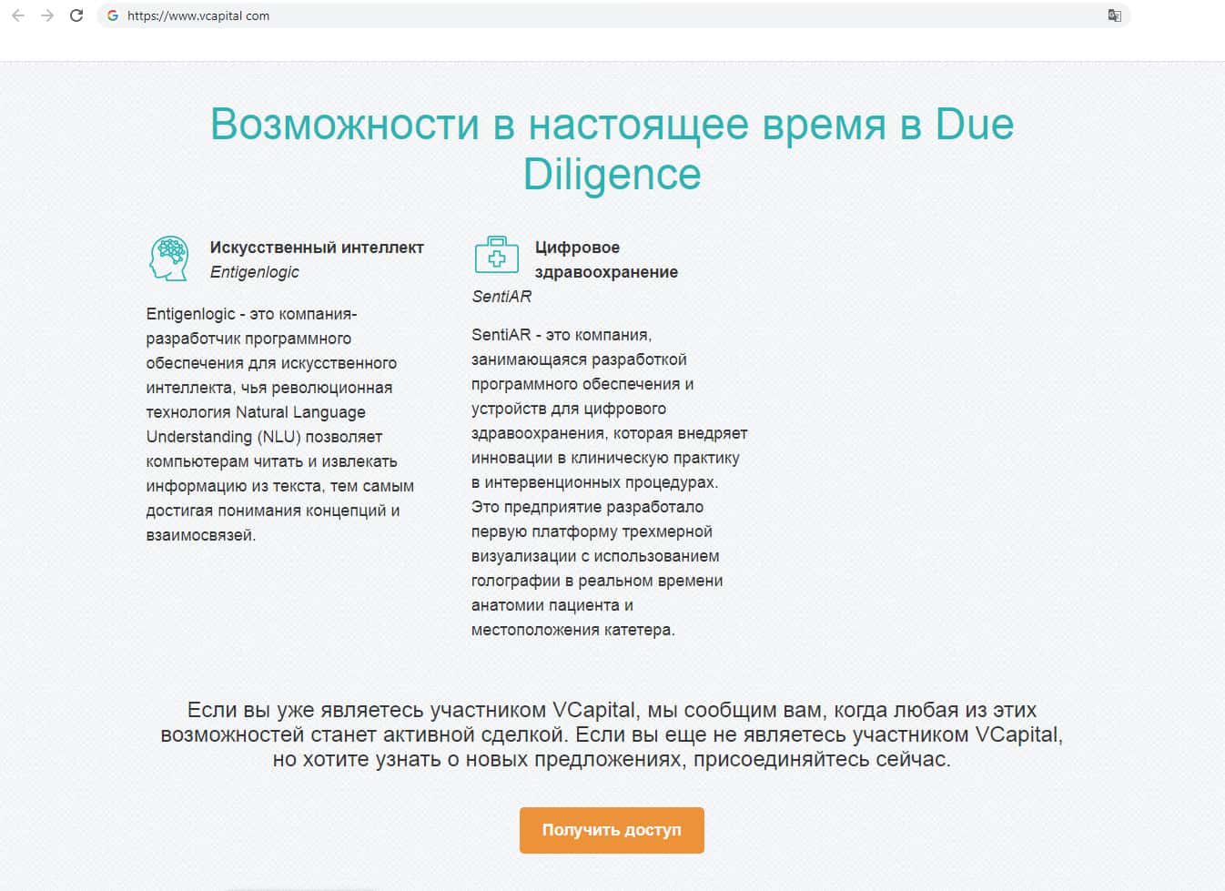 В следующем пункте компания представляет пример двух сделок, которые вскоре станут активными и открытыми для инвестирования. Но это не больше чем фальшивка. Так как эти компании понятия не имеют о существование лохотрона VCapital, и того, что он предлагает инвестиции для этих двух фирм.