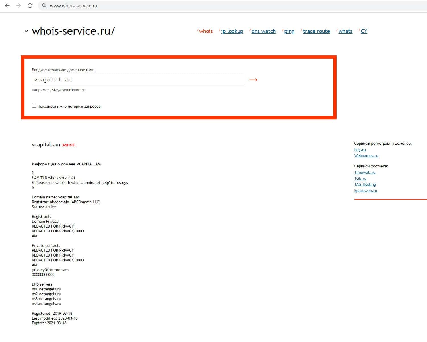 Кто является владельцем доменного адреса конторы разводил VCapital?