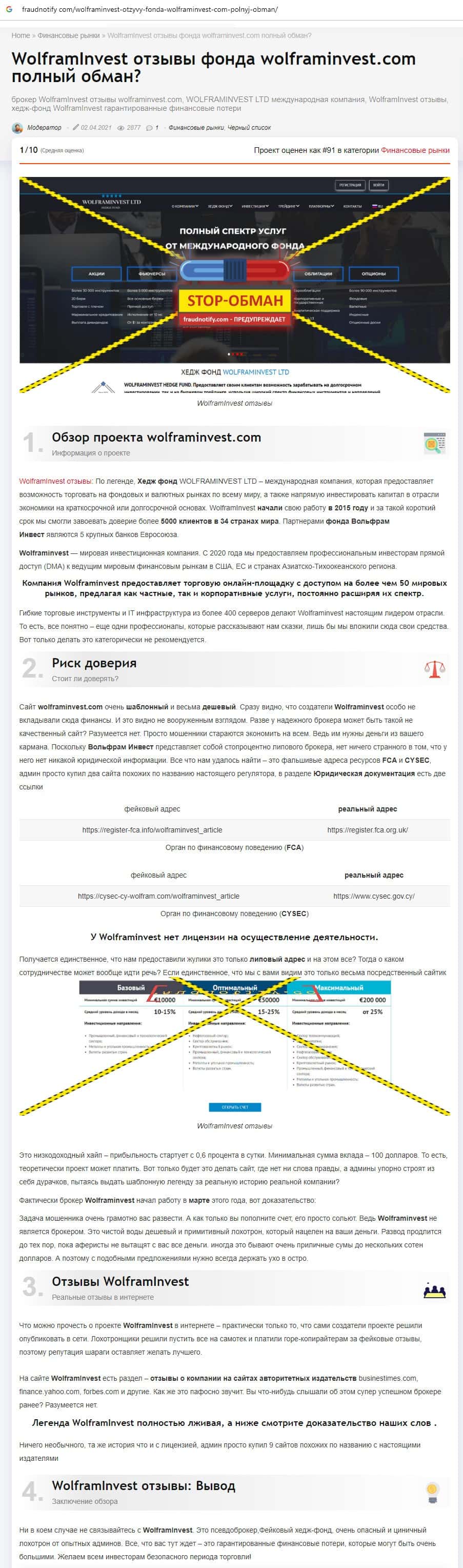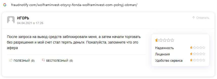 Вольфрам Инвест - обзоры аферистов на других интернет-порталах