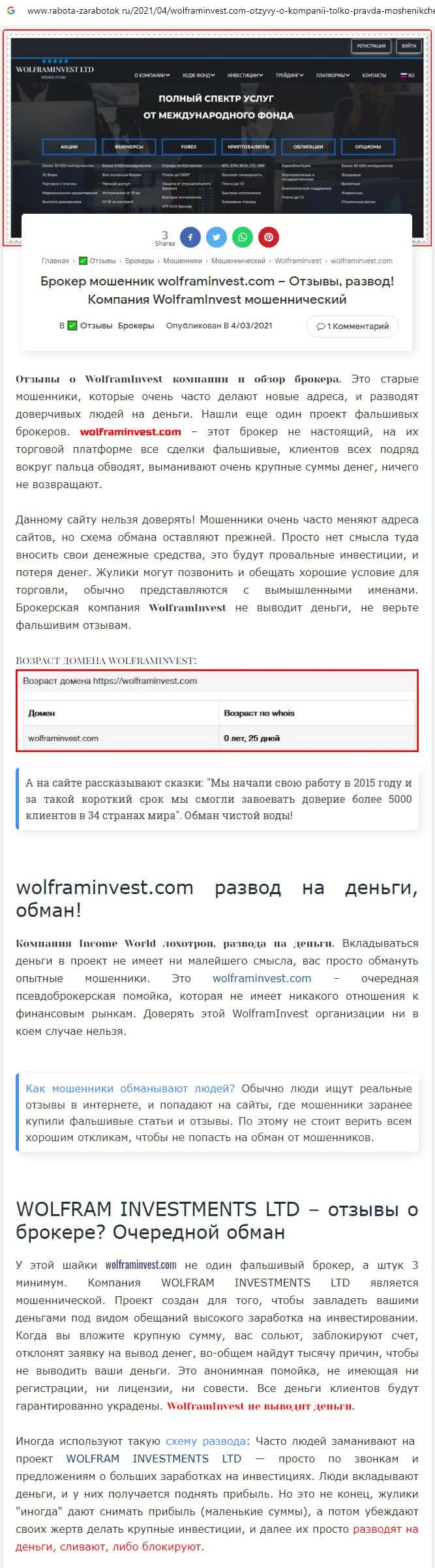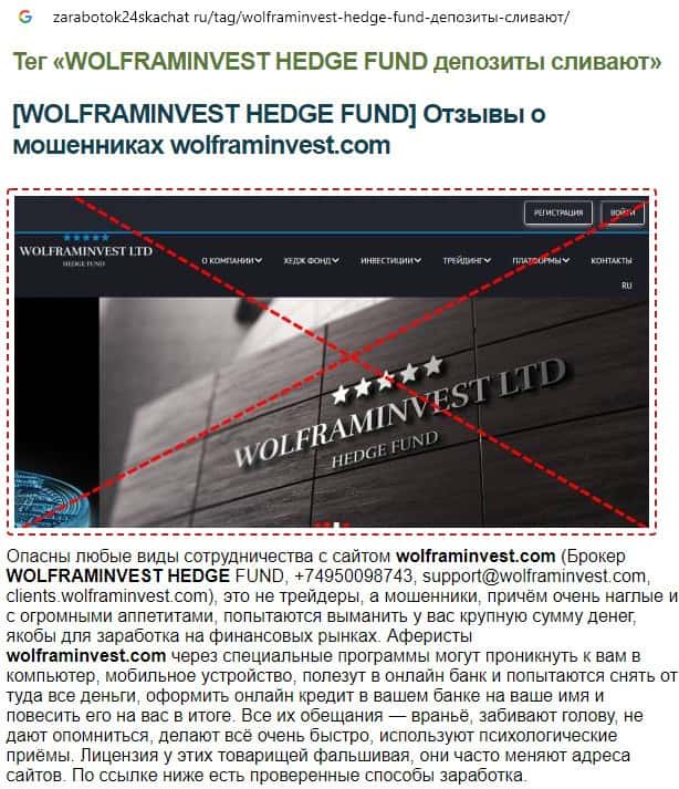 Отзывы о скам-конторе WolframInvest, ныне присутствующие в сети-интернет