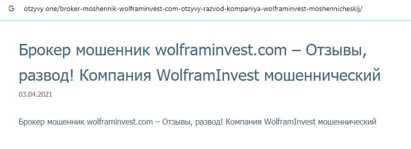 - Отзывы о скам-конторе WolframInvest, ныне присутствующие в сети-интернет