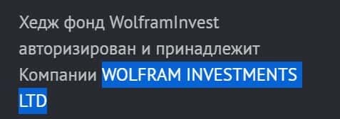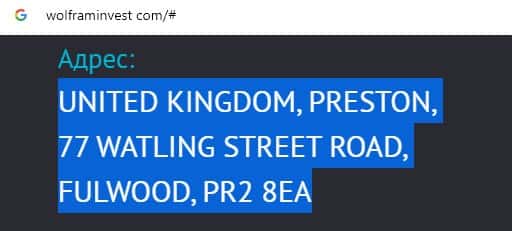 Сведения о месте регистрации WolframInvest - фейк, так как большинство проектов у себя на сайте указывают адрес местонахождения на территории Великобритании в качестве приманки.