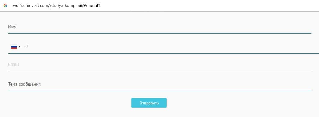 - Обзор главной страницы жульнической организации Вольфрам Инвест