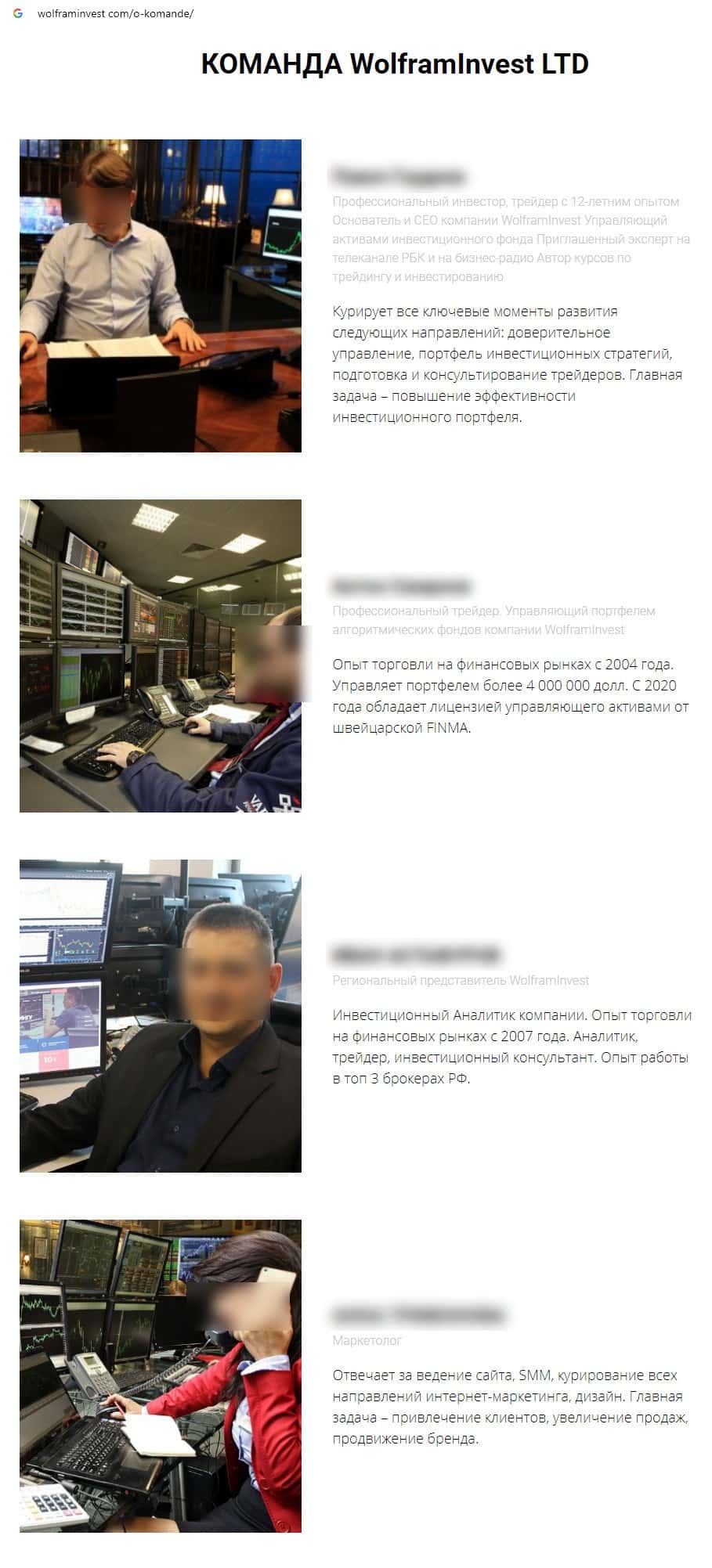 Аферисты Вольфрам Инвест предоставляют вероятно фальшивую информацию о руководстве, но точно знать о том, кто на самом деле руководит скам-проектом мы не можем.