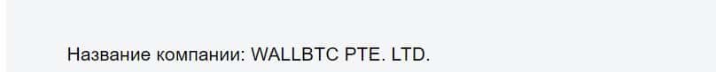Юридическим лицом брокерской конторы Волл БТЦ является организация WALLBTC PTE. LTD, о чем написано на сайте.