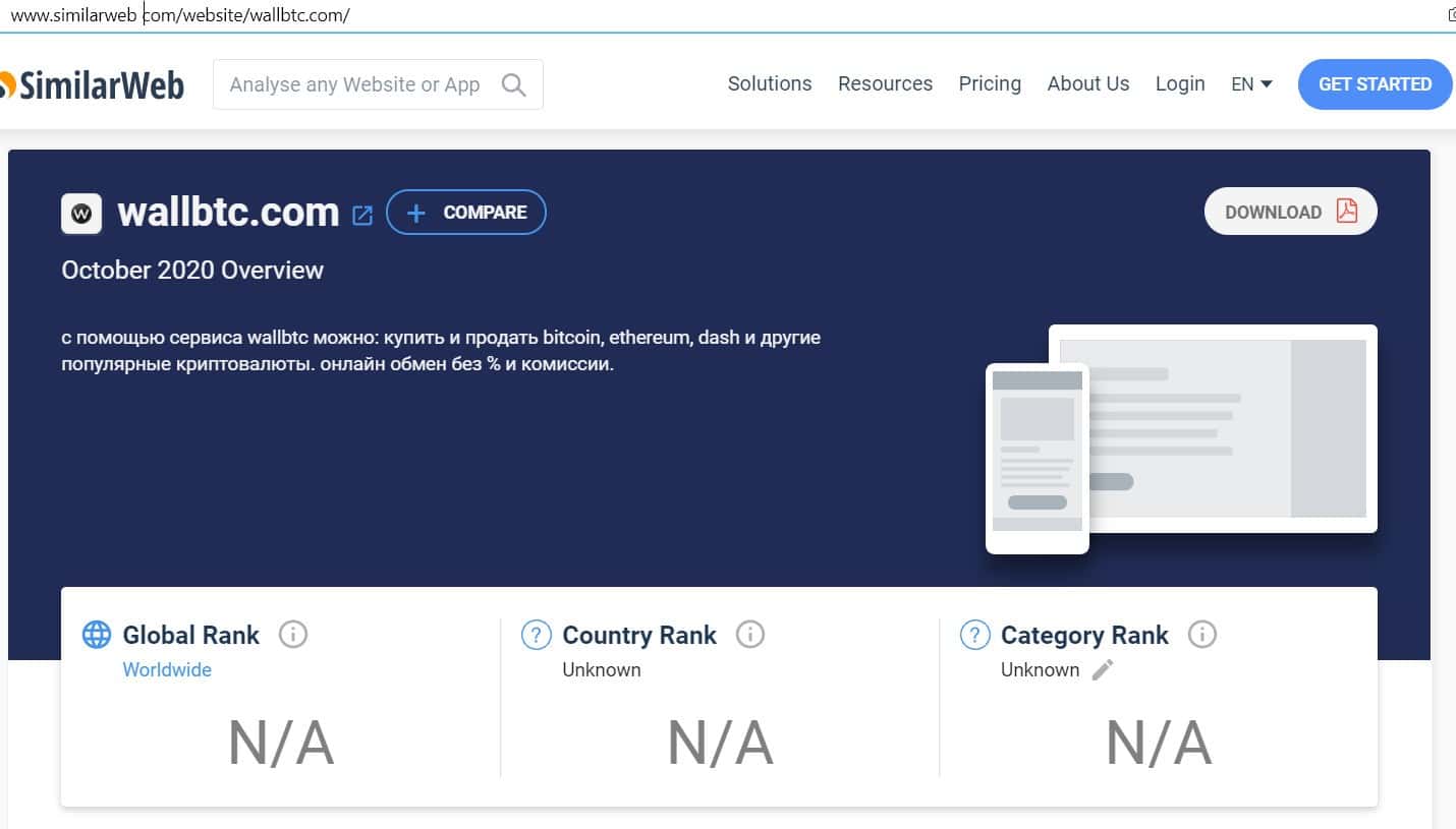 - Данные сервиса проверки трафика Симиларвеб о домене wallbtc com