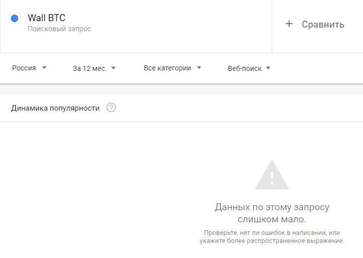 Доменное имя мошеннического сайта "wallbtc.com" вбивали в поисковую систему Гугл слишком редко, поэтому данных по этому запросу практически нет.