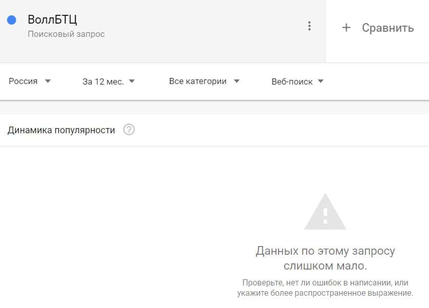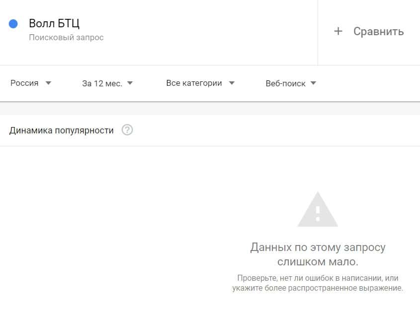 Если вбить то же название на английском языке, но с пробелами - "Wall BTC", результат поиска будет таким: очень мало данных.