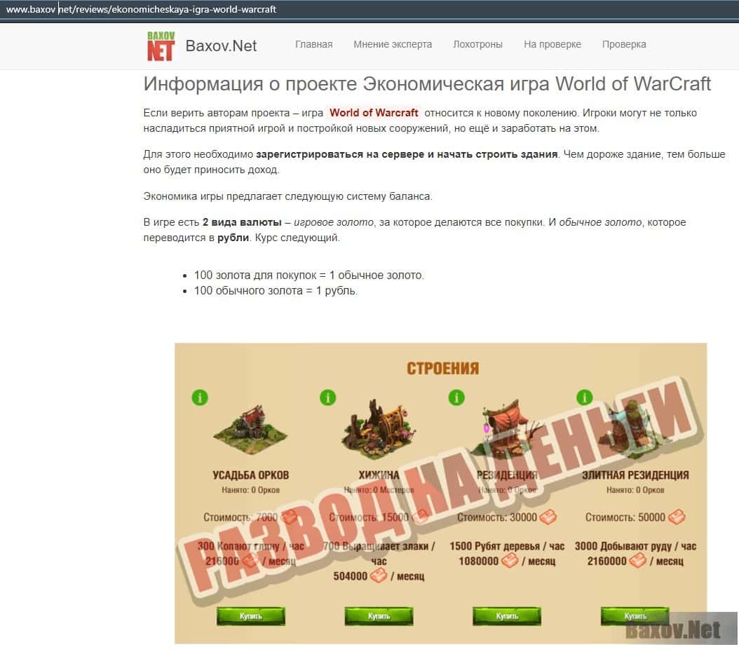 Ворлд Гейм Крафт - очередной мошеннический хайп в сети интернет, который основан на одноименной игре WarCraft. Аферисты рассчитывают, что любители данной игры, которые захотят заработать халявных денег закинут туда свои средства. Конечно же все рассчитано на лоха и данная финансовая пирамида рухнет, как только последний лох принесет им последнюю копейку. Поэтому мы настоятельно не рекомендуем связываться с этим недолохотроном WorldGameCraft Com.
