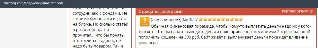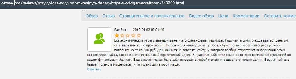 Люди не рекомендуют вкладывать деньги в WorldGameCraft Com