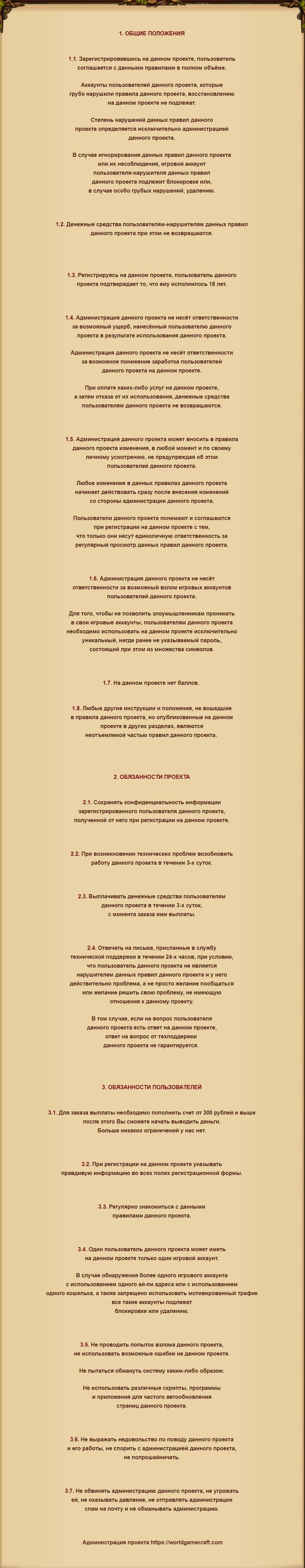 Далее представлена первая версия клиентского соглашения конторы Ворлд Гейм Крафт, где описаны все нюансы и подводные камни, которые ждут при работе с ними: