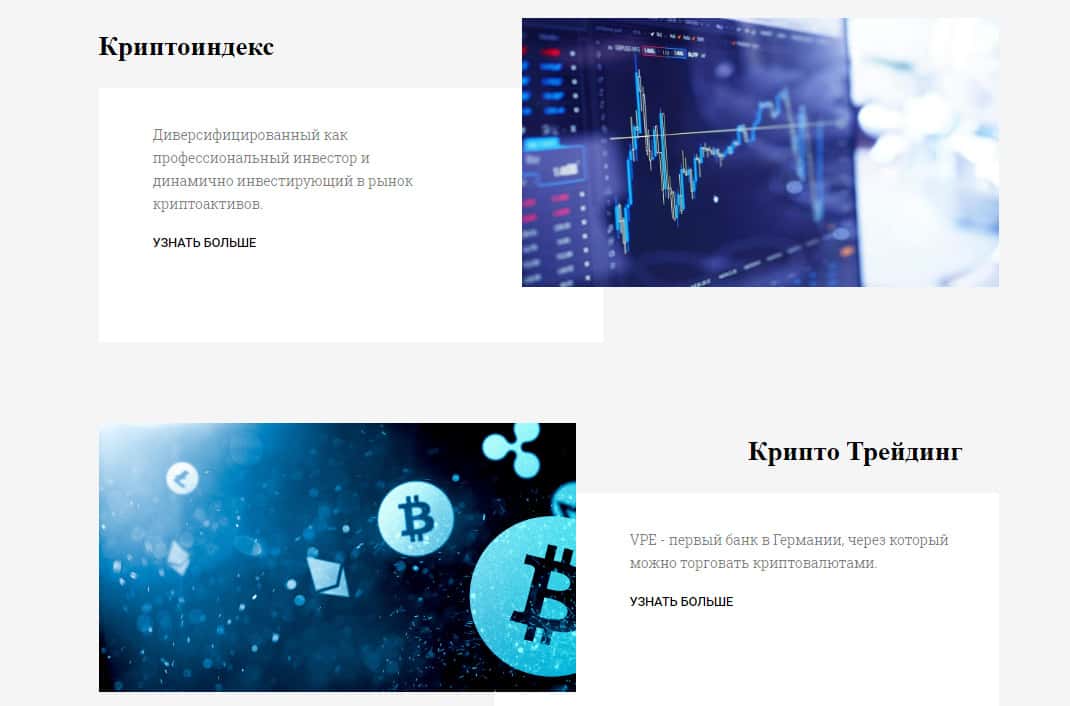 Далее, шулера vPE Bank расположили информацию о криптоиндексе и крипто трейдинге, где они рассказывают, какие они молодцы и как "диверсифицированны как профессиональный инвестор и динамично инвестирующий в рынок криптоактивов". Что это первый банк, через который можно торговать, и не получать прибыли, а только тратить на взносы и инвестиции.