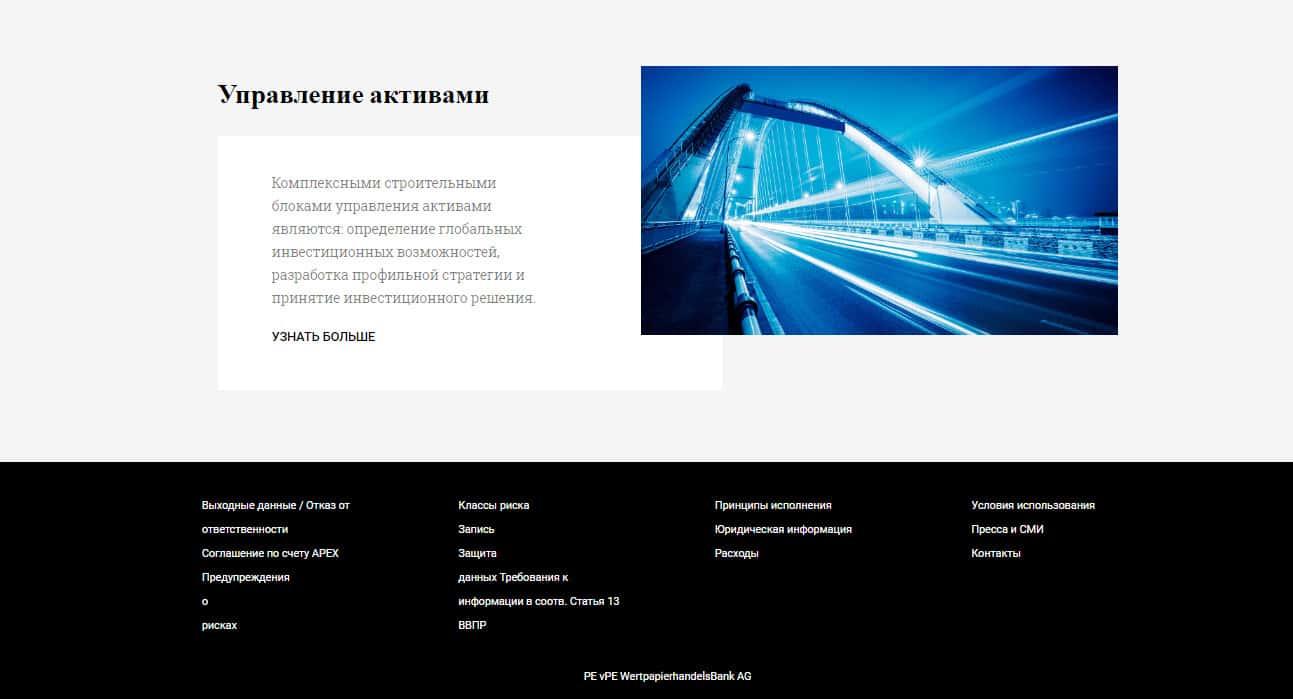 Вот мы и добрались до конца главной страницы мошеннического сайта vPE Bank. Как можно заметить, тут они расположили некоторую рекламу об управлении активами и в самом конце вкладки с разного рода информацией. К сожалению, не замечено никаких данных о лицензии, или других нормативно-правовых документах. Но это уже совсем другая история.