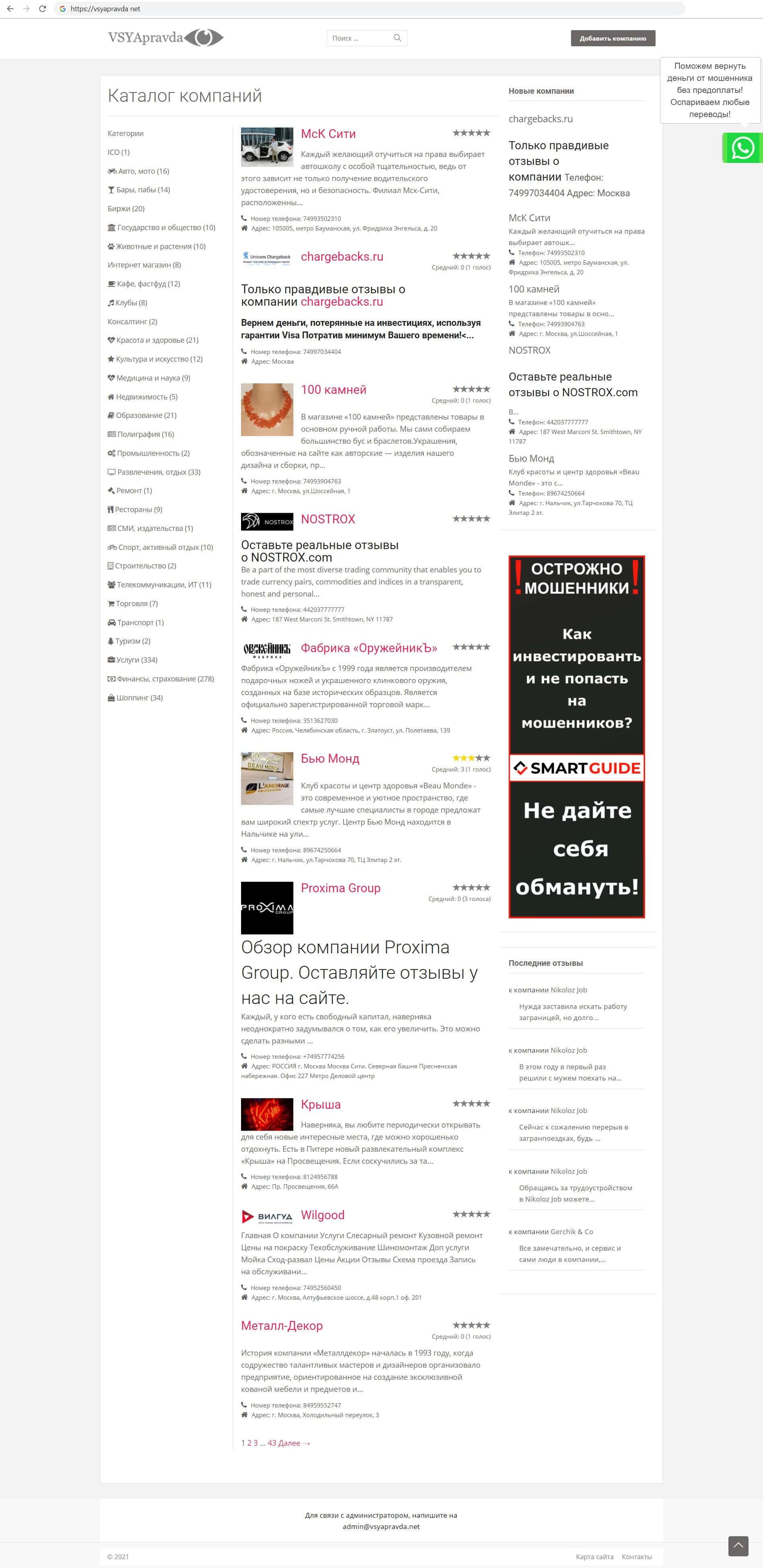 Главный сайт аферистов VsyaPravda Net содержит в себе множество заказных статей и фальшивых отзывов о разных компаниях. Вся информация на сайте является проплаченной.