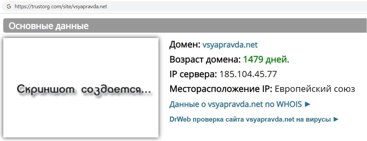 Информация о возрасте главного интернет ресурса недоконторы VsyaPravda Net
