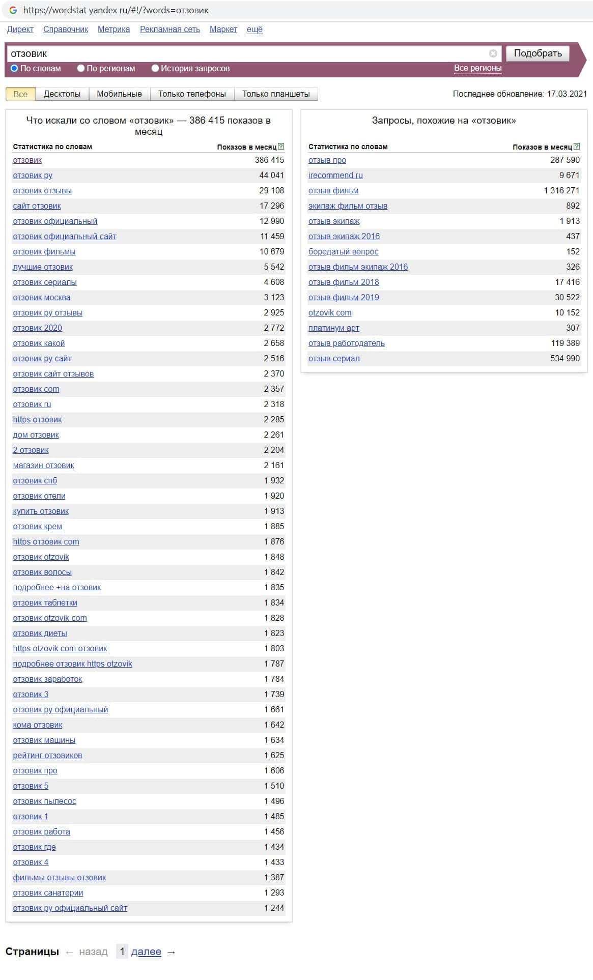 wordstat yandex ru - количество брендовых запросов в Яндексе