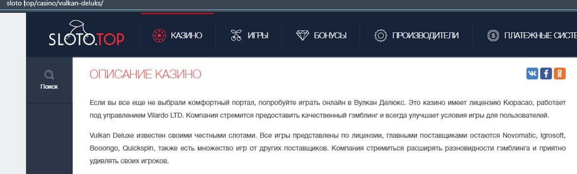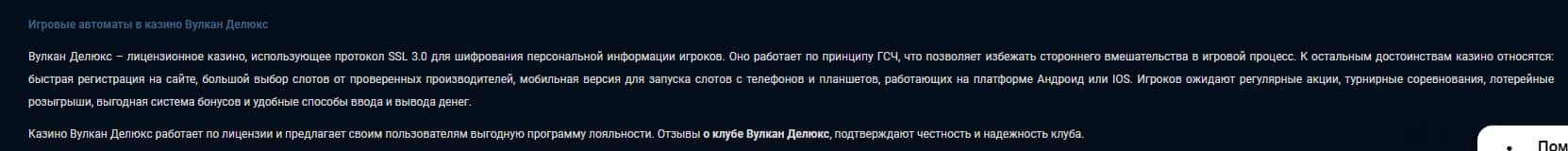 - Статьи с других ресурсов о конторе Вулкан Делюкс