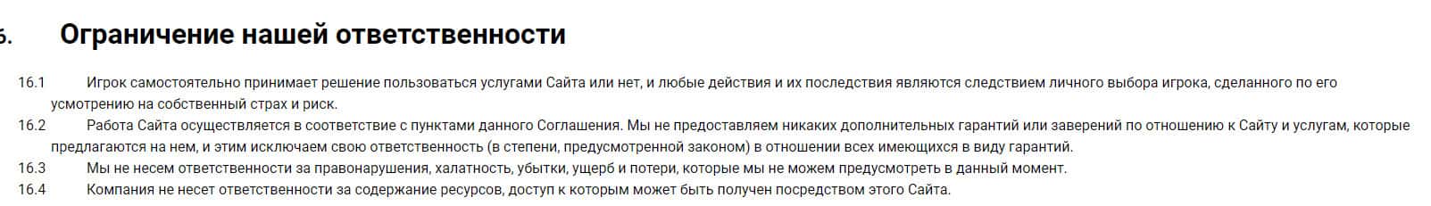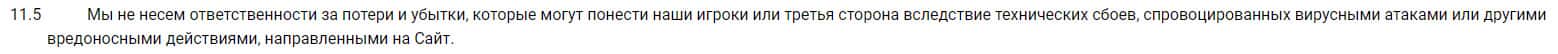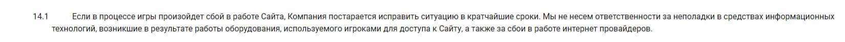 Если в процессе игры произойдет сбой, при котором игрок потеряет все деньги, то за такое они также нести ответственность не будут, а просто спишут на риски.