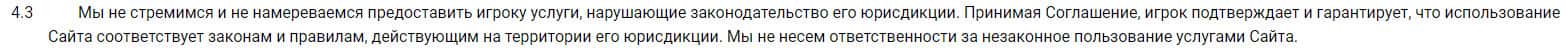 Контора Вулкан Делюкс также описывает, что они стремятся не нарушать законодательство, но в тоже время не будут нести ответственность, если вдруг это сделают.