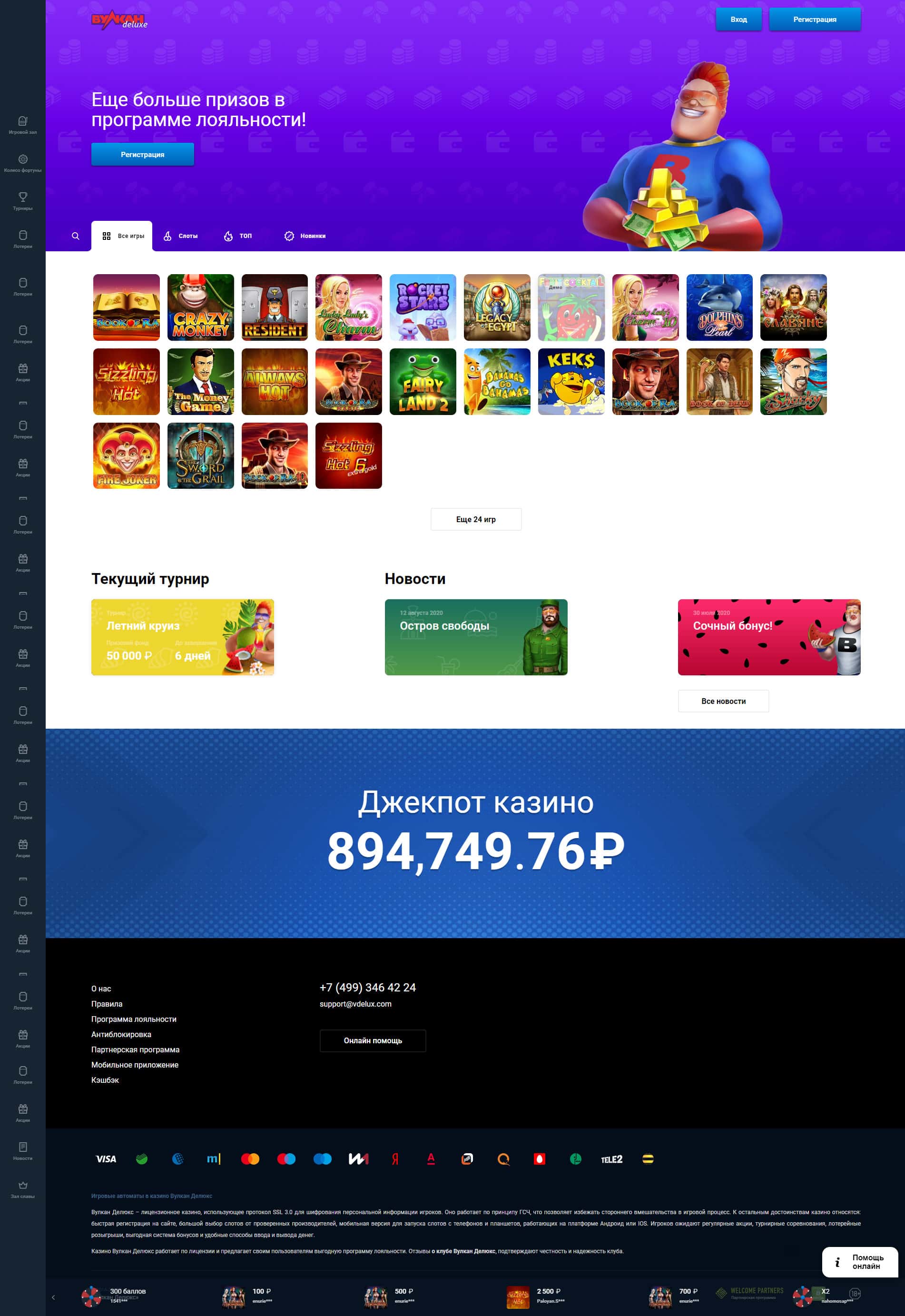 Вулкан Делюкс - еще одно мошенническое казино, которое имеет регистрацию юридического лица в России, принадлежит казино из ряда Club Vulkan, а также использует игроков в качестве дойных коров. Если вам вдруг повстречалось не лицензированное казино Vulkan-Delux Top - немедленно закрывайте сайт, так как там можно только потерять вложенные средства.