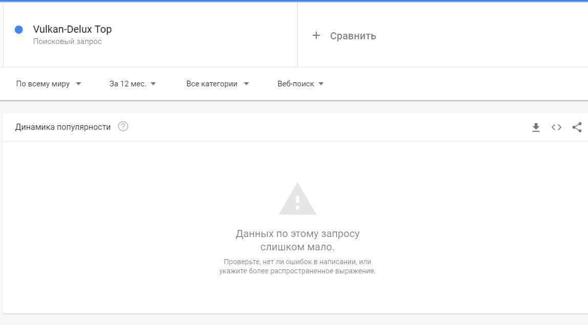 Ну и конечно же ситуация с изменением запроса с точкой "vulkan-delux.top", также не порешало количество показов по версии Гугл Трендс.