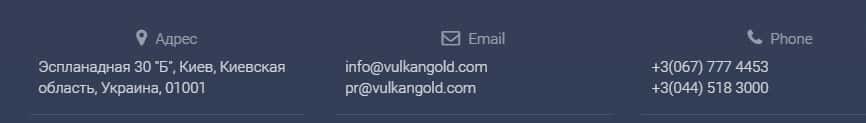 Касательно юридического лица, которое якобы владеет брендом Вулкан Голд, особо сказать нечего, но на сайте указано, что это некая компания Вулкан Украина.