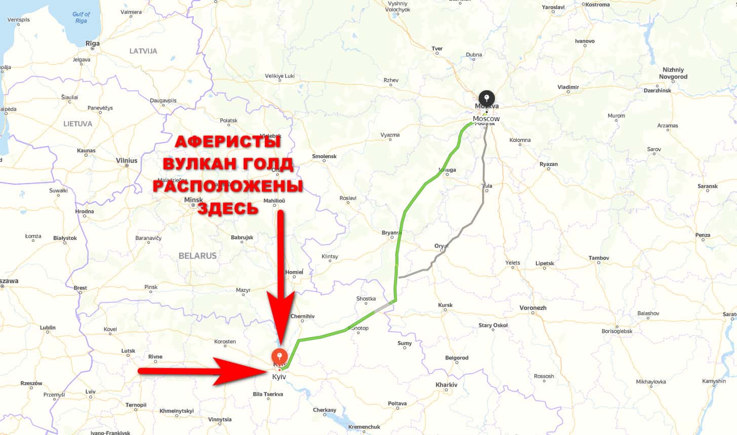 Согласно предоставленных данных, мошенническое казино Вулкан Голд расположен в столице Украины - Киев, которая находится не так далеко от Москвы.