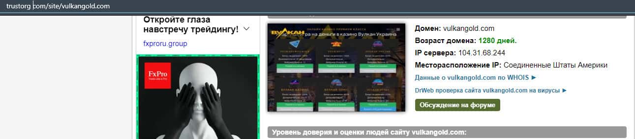 Мошенническая контора Вулкан Голд работает уже давно (1280 дней) и успешно кидает людей на деньги. Об этом и пытается донести ресурс по проверке доменов trustorg com.