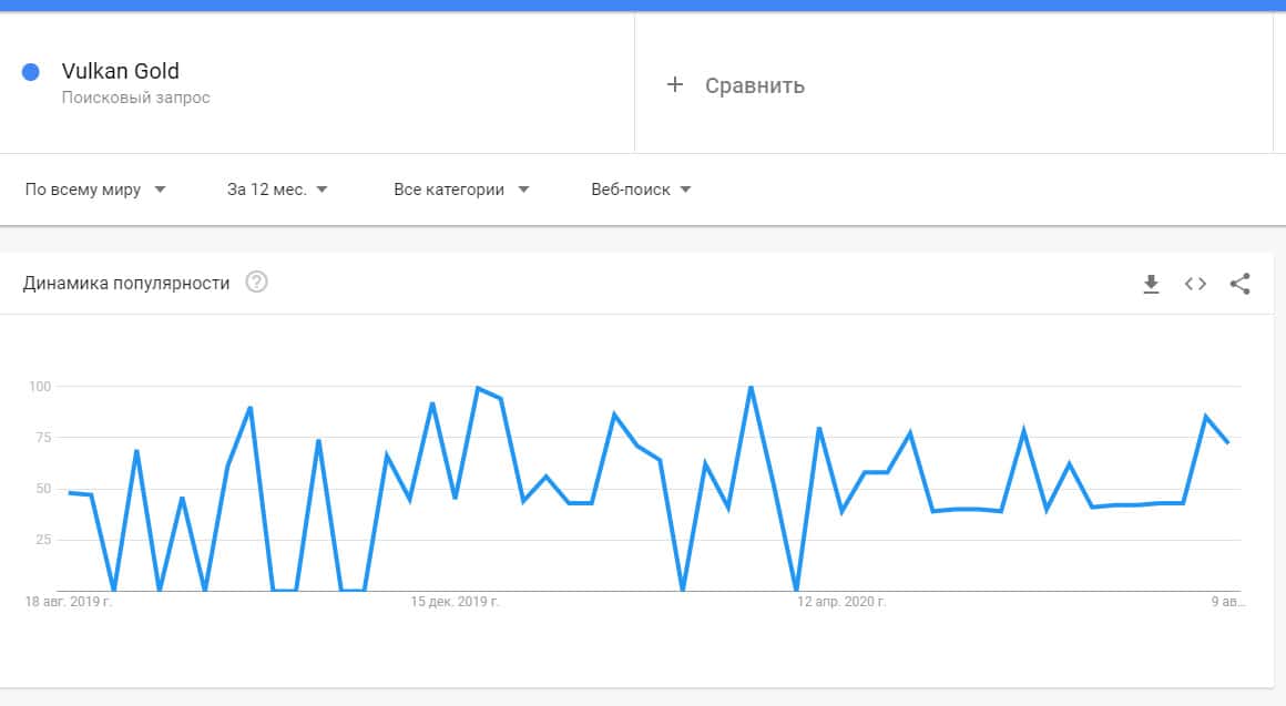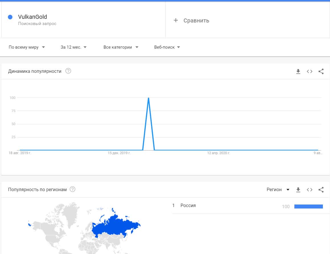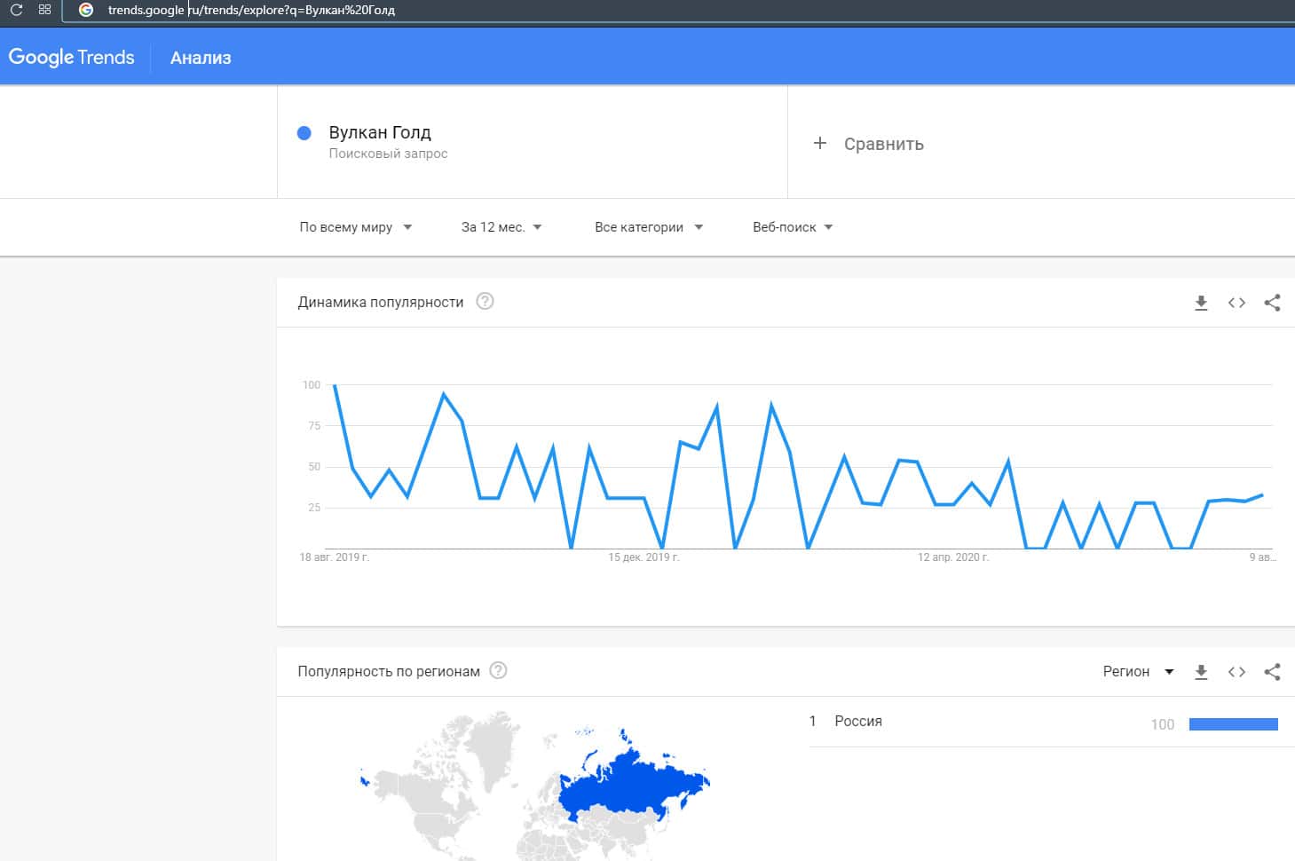 Касательно англоязычной версии бренда "Vulkan Gold", согласно информации в Гугл Трендс была активность, только слабая.