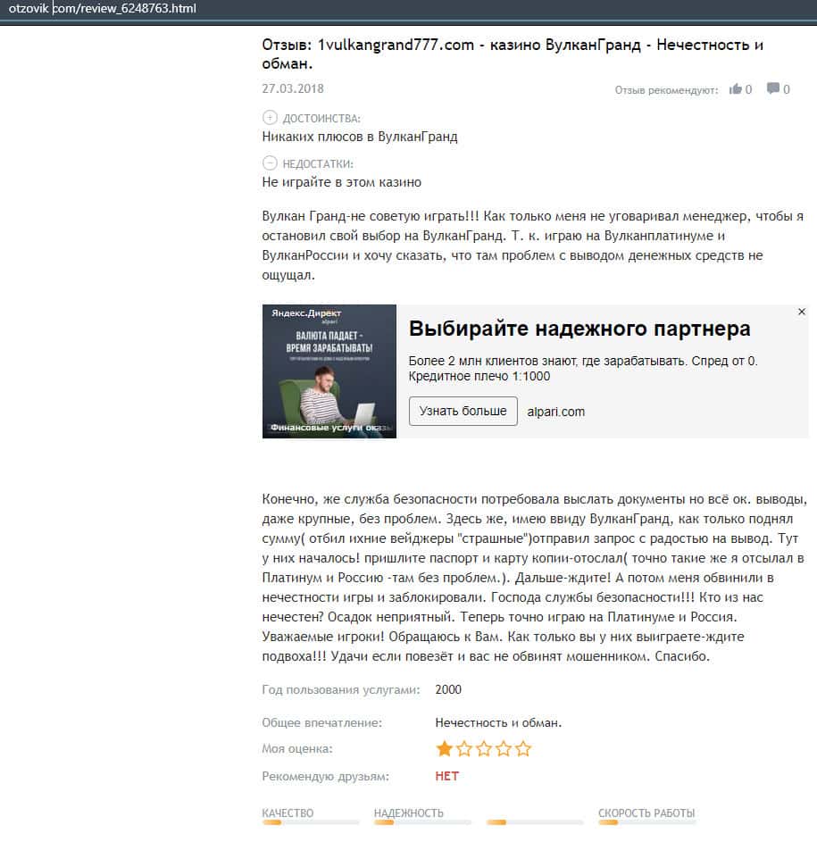Такая же ситуация и с немного видоизмененной версией бренда "Vulcan GrandKazino", и этой непопулярной шараге не стоит доверять.
