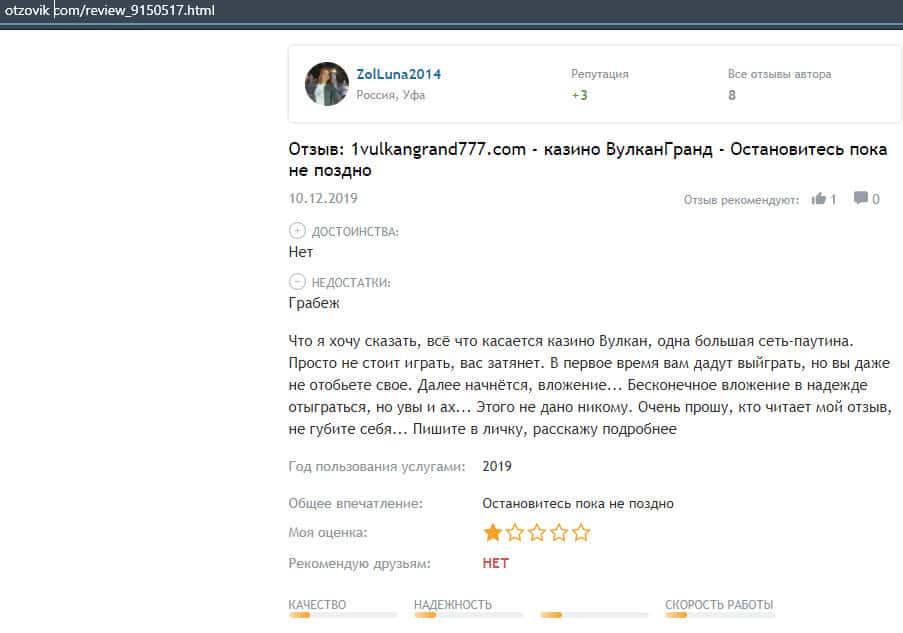 - Игроки не советуют вкладывать деньги в Vulcan Grand Kazino