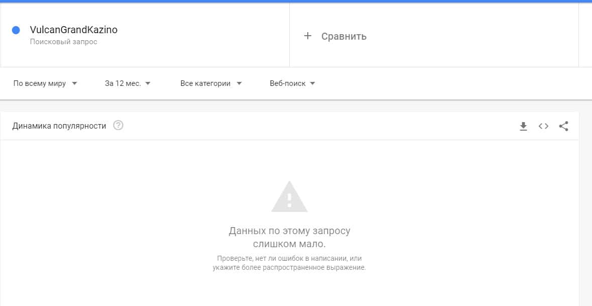 Что касается версии бренда названия самого официального сайта "vulcan-grand-kazino.com" то в Гугл не было найдено ни одного показа за последний месяц.