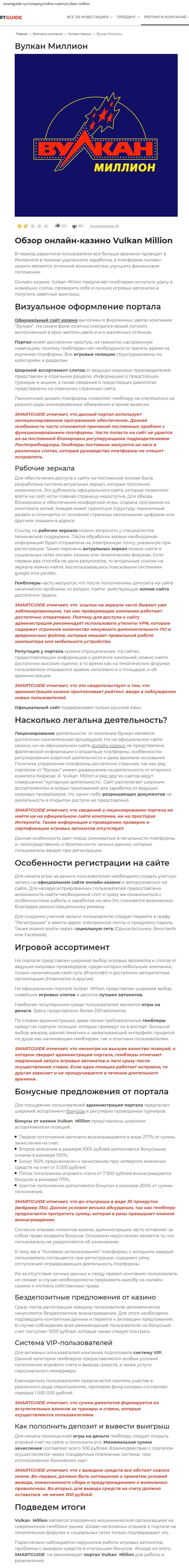 Информация о сайте мошеннической конторы Вулкан Миллион