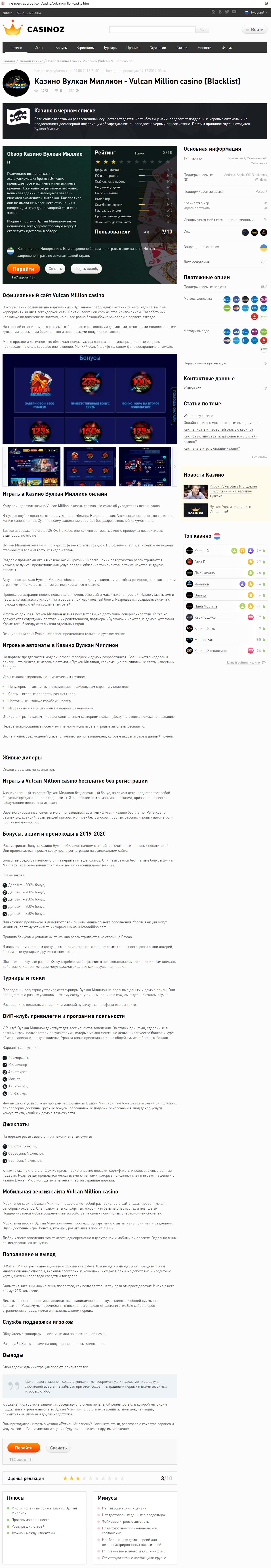 Ресурс casinozru appspot com занес казино Вулкан Миллион в черный список. Данная контора - мошенническая, что становится ясно при ближайшем рассмотрении сайта.