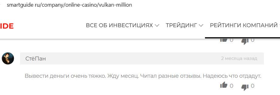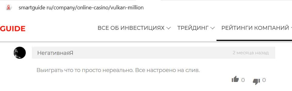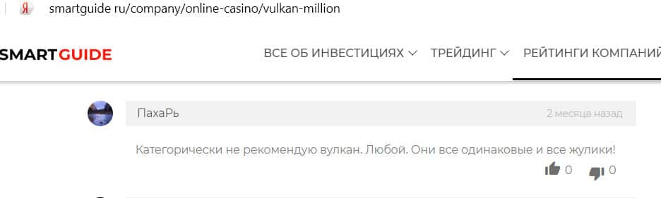 - Люди не доверяют Вулкан Миллион и считают лохотроном