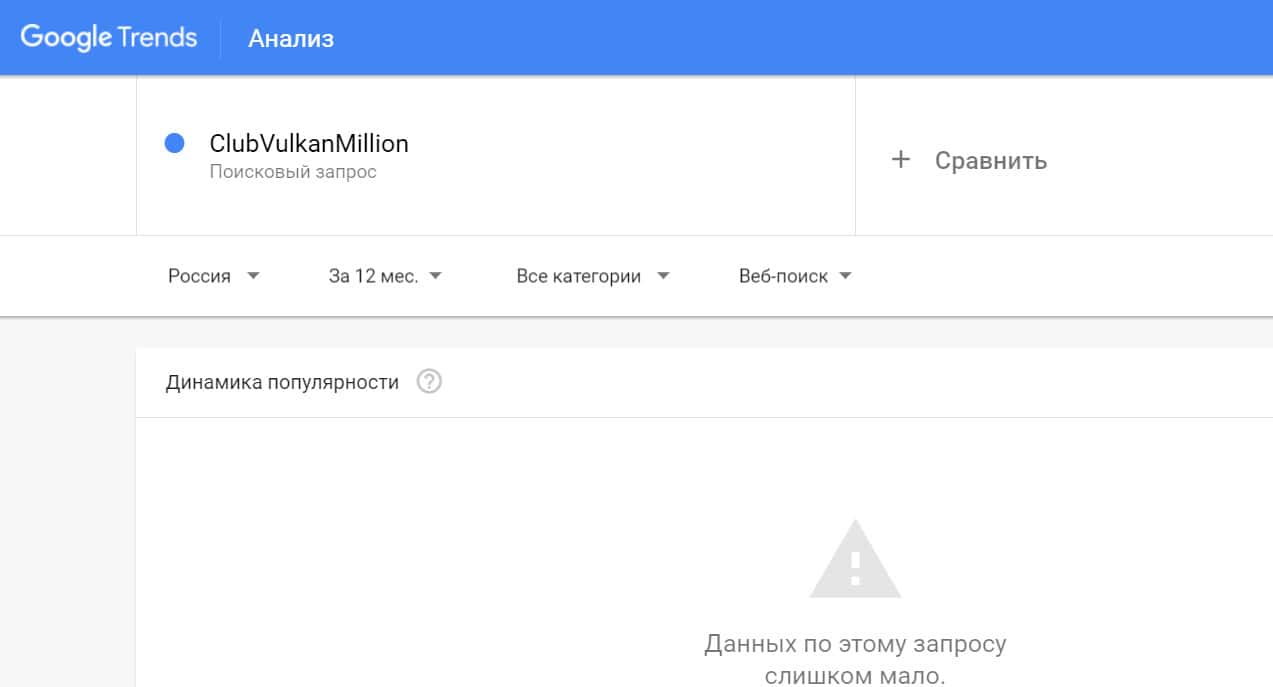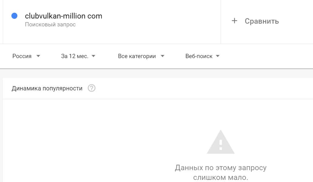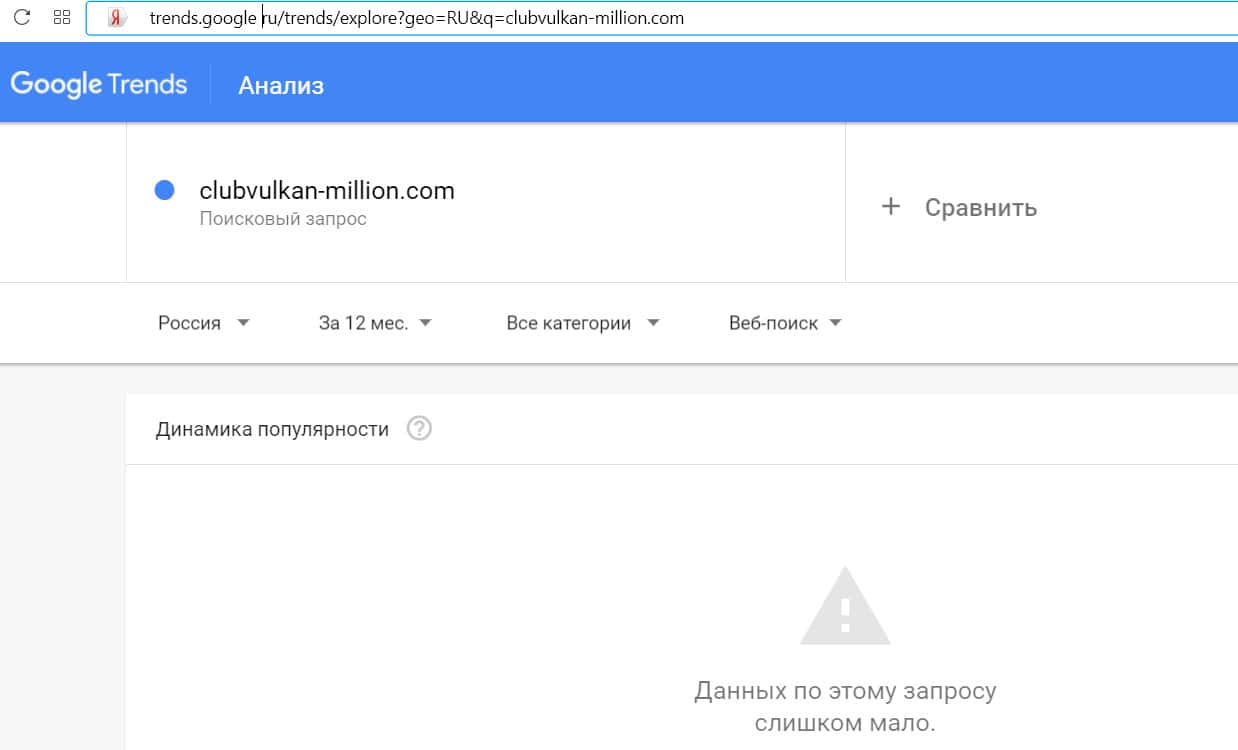 Запросы от пользователей по доменному имени "clubvulkan-million com" с пробелом в сервисе Гугл Тренд были довольно редким явлением.