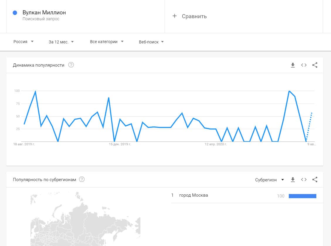 - Информация по запросам бренда Вулкан Миллион в поисковой системе Гугл