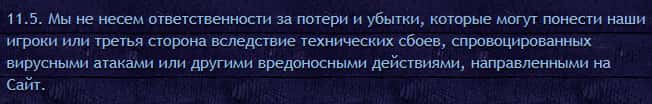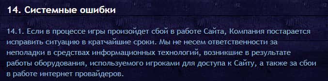 Если в процессе игры, в которую клиент играет в казино Вулкан Платинум, произойдет сбой и он потеряет деньги, то контора нести за это ответственность не будет.
