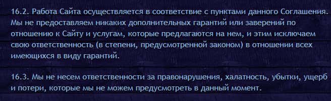 Мошенники Vulcan Platinum не предоставляют и не дают никаких гарантий или заверений, касательно своей деятельности, а соответственно ни на что не надейтесь.
