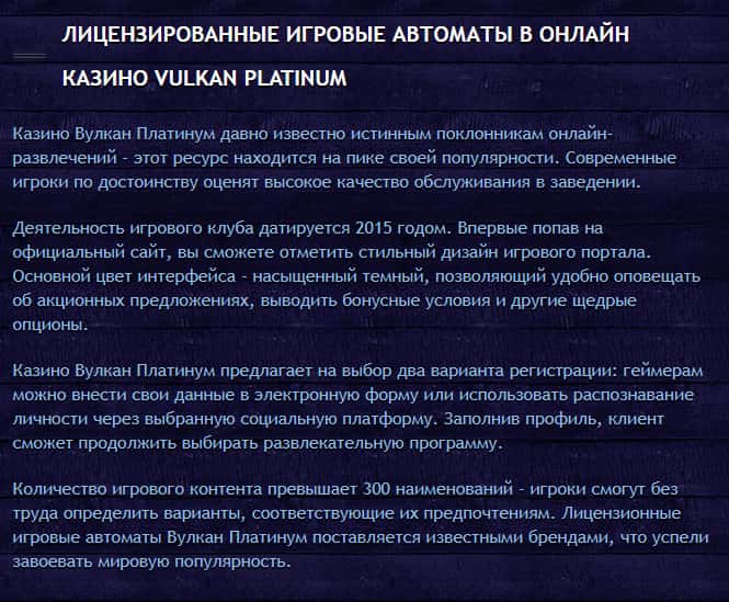 Ниже вы можете ознакомиться с официальным сайтом конторы Vulcan Platinum, а вернее с ее главной страницей. Вы должны знать мошенника в лицо и не заходить на этот сайт.