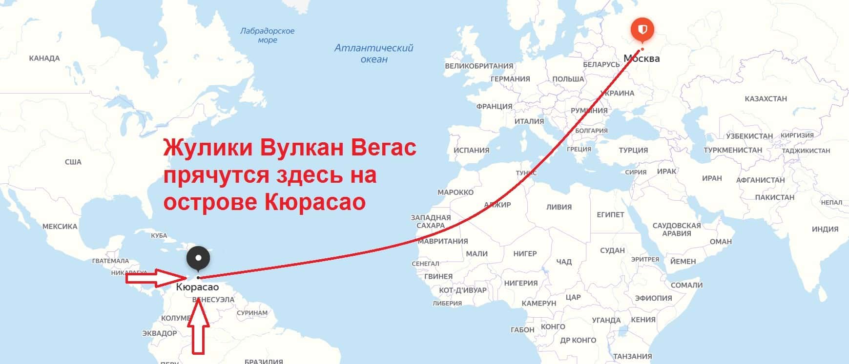 Шулера VulkanVegas конкретного адреса не указывают, известно лишь то, что деятельность компании регулируется согласно законодательству оффшорного государства Кюрасао.