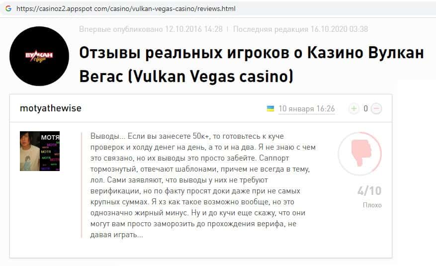 - Отзывы о скам-проекте VulkanVegas, ныне присутствующие в интернет-сети