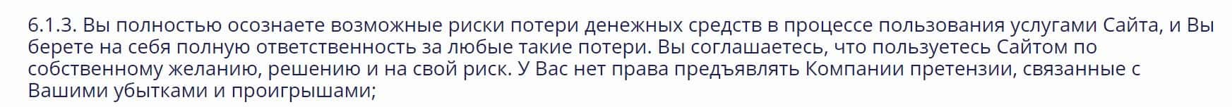 Предупреждая о том, что здесь можно потерять свои деньги, жулики Vulkan Vegas полностью снимают с себя ответственность за то, что не выводят деньги игрокам.