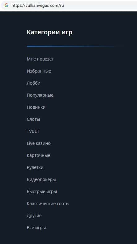 - Типы игр на интернет-сервисе шараги Vulkan Vegas
