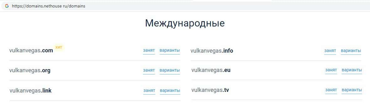 На веб-портале domains nethouse ru была произведена проверка домена vulkanvegas com, которая показала то, что данный интернет-лохотрон находится также на сайтах: