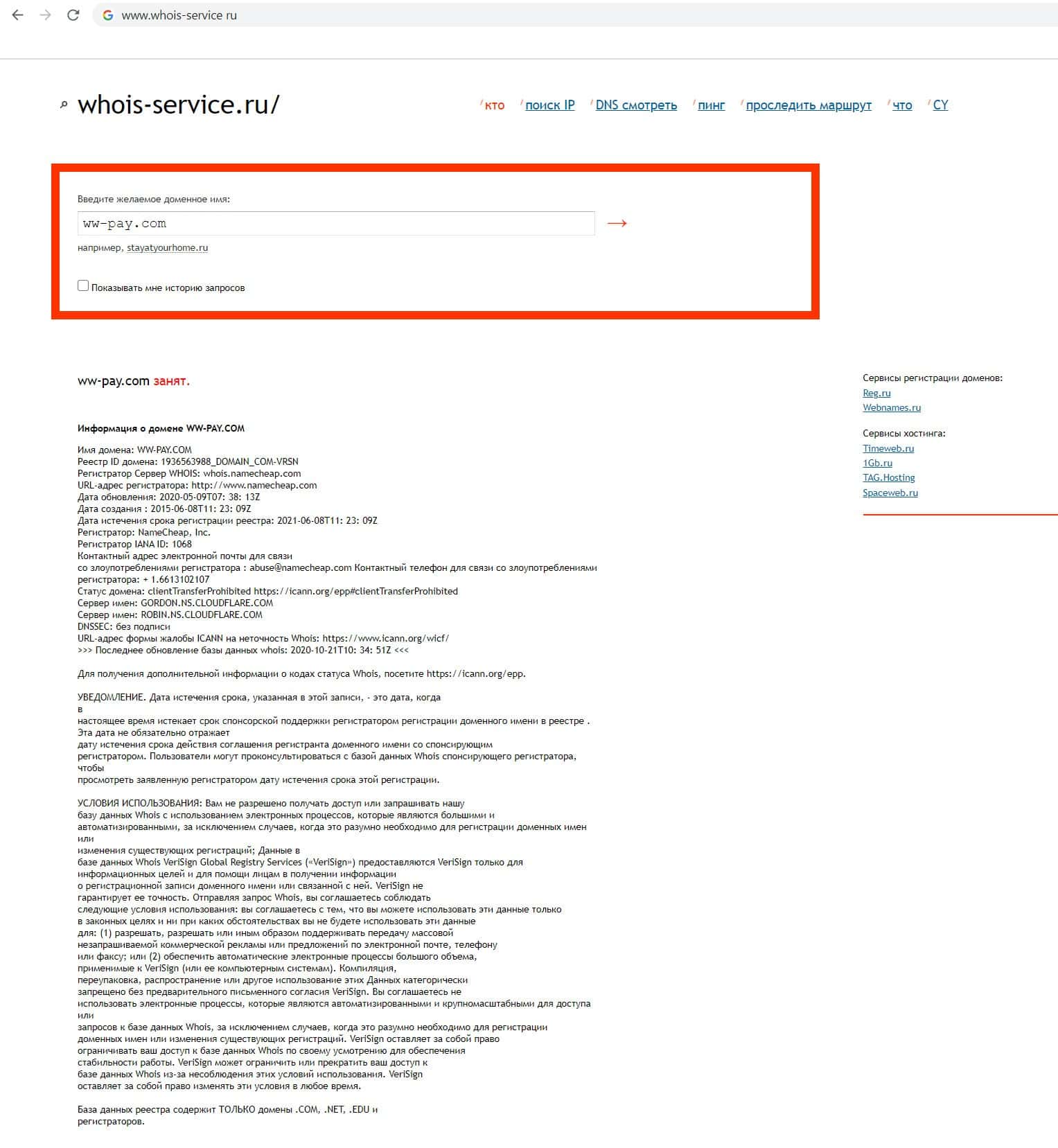 Кому принадлежит домен мошеннического проекта ВВ Пэй?